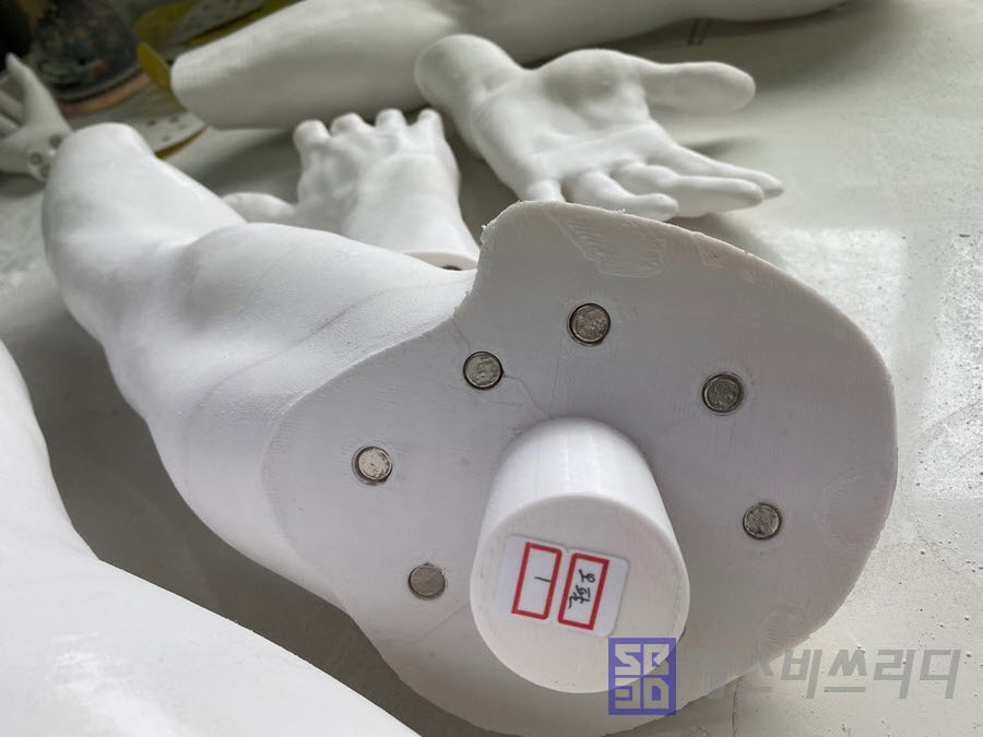 또 원하는 경우 팔, 손목, 다리, 허리 등에 자석을 삽입해 탈부착이 가능하도록 하거나 발아래에 구멍을 뚫어 발판을 만들어 설 수 있게 완성시킬 수도 있습니다. 모델링부터 출력, 가공까지 모든 단계 의뢰가 가능하니 필요하신 분들은 에스비로 언제든 연락바랍니다.